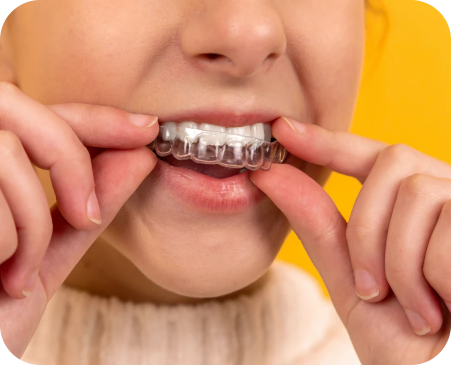 - Port de la contention : Après le traitement, une gouttière de contention prévient tout déplacement dentaire non désiré.