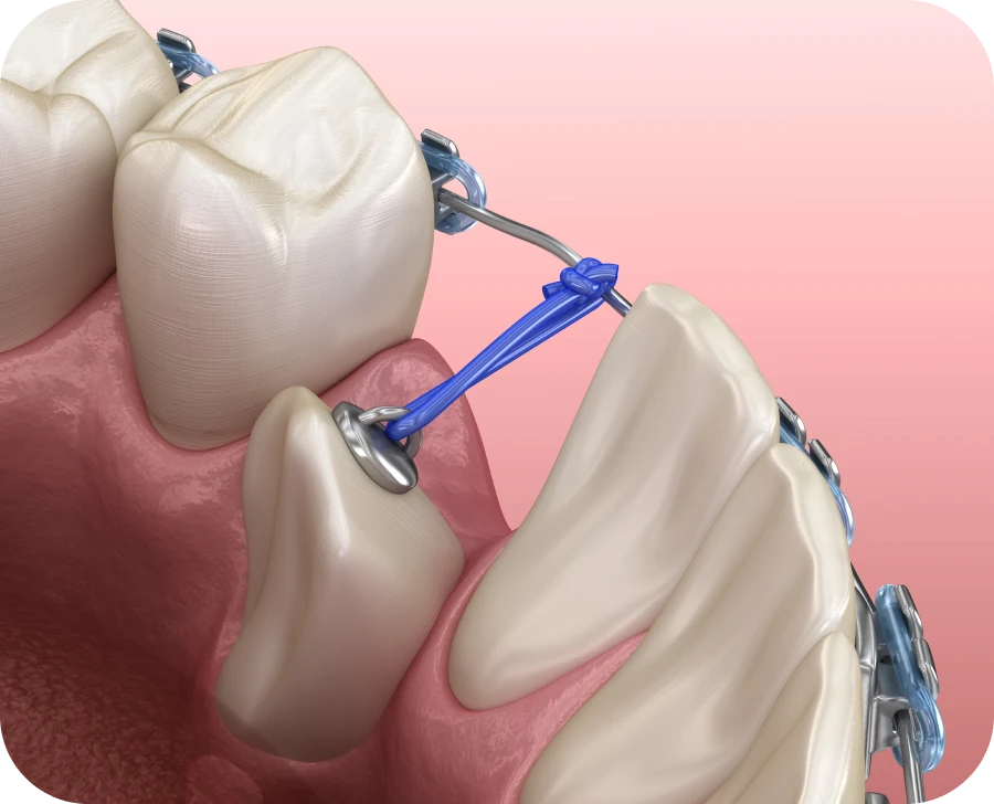 Par la suite, une traction orthodontique est souvent mise en place. Une attache est alors fixée sur la dent, qui est doucement guidée à l’aide d’un fil. Il convient d’ajuster progressivement la force de traction afin de ne pas fragiliser la racine. Des rendez-vous réguliers permettent de suivre l’évolution et de réajuster le traitement si besoin.