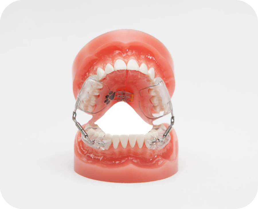 - le disjoncteur palatin : cet appareil élargit le palais trop étroit. Il crée plus d’espace pour la langue. Il améliore aussi le passage de l’air par le nez.